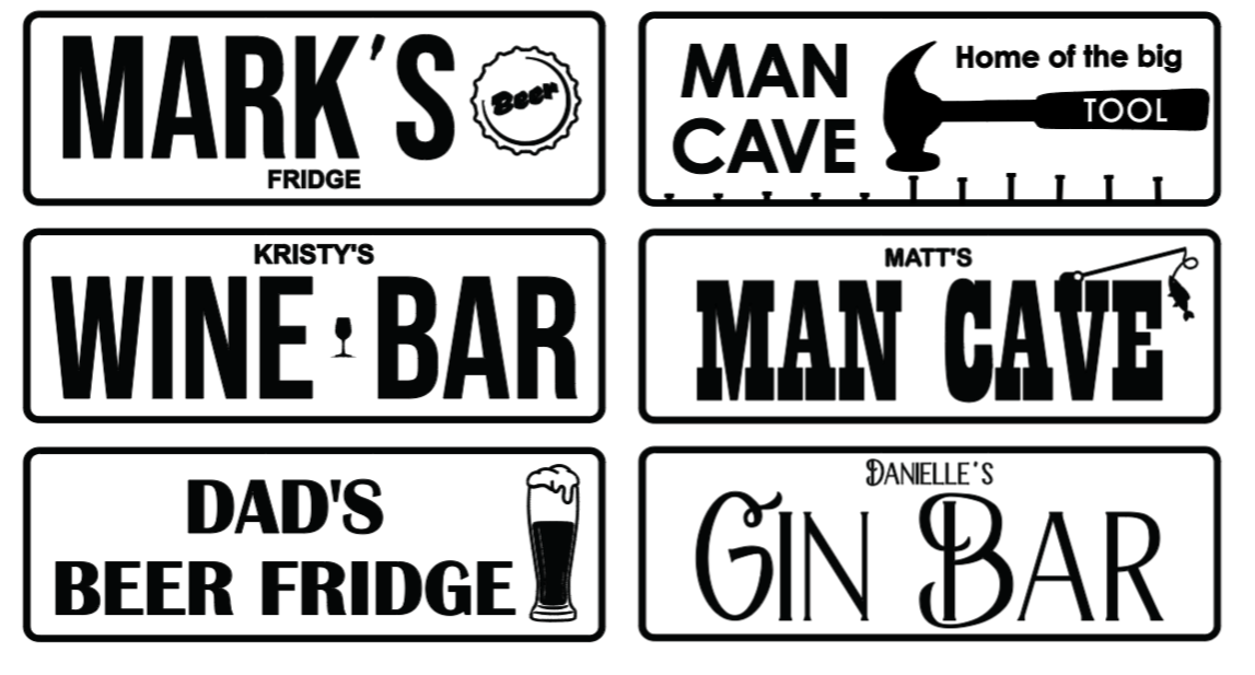 We have wine bar & beer fridge designs, however we can create a design for you. Please email dashofcreations@gmail.com to enquire about your custom design or if you require alternative colour lettering.